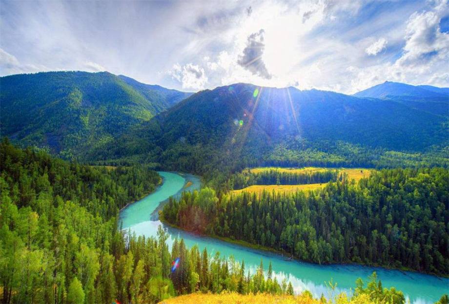 这里的区间车每到一个景点都会停车,每一个景点你都可以下车游玩,玩好了,再上停靠点等后边来的区间车, 从喀纳斯到贾登峪的路上一路经过纯净的鸭泽湖、神仙湾、圣泉、月亮湾、卧龙湾,每个点都有区间车停靠。游览完大约13:00,我们前往贾登峪用餐后赴禾木景区(约3h车程)。