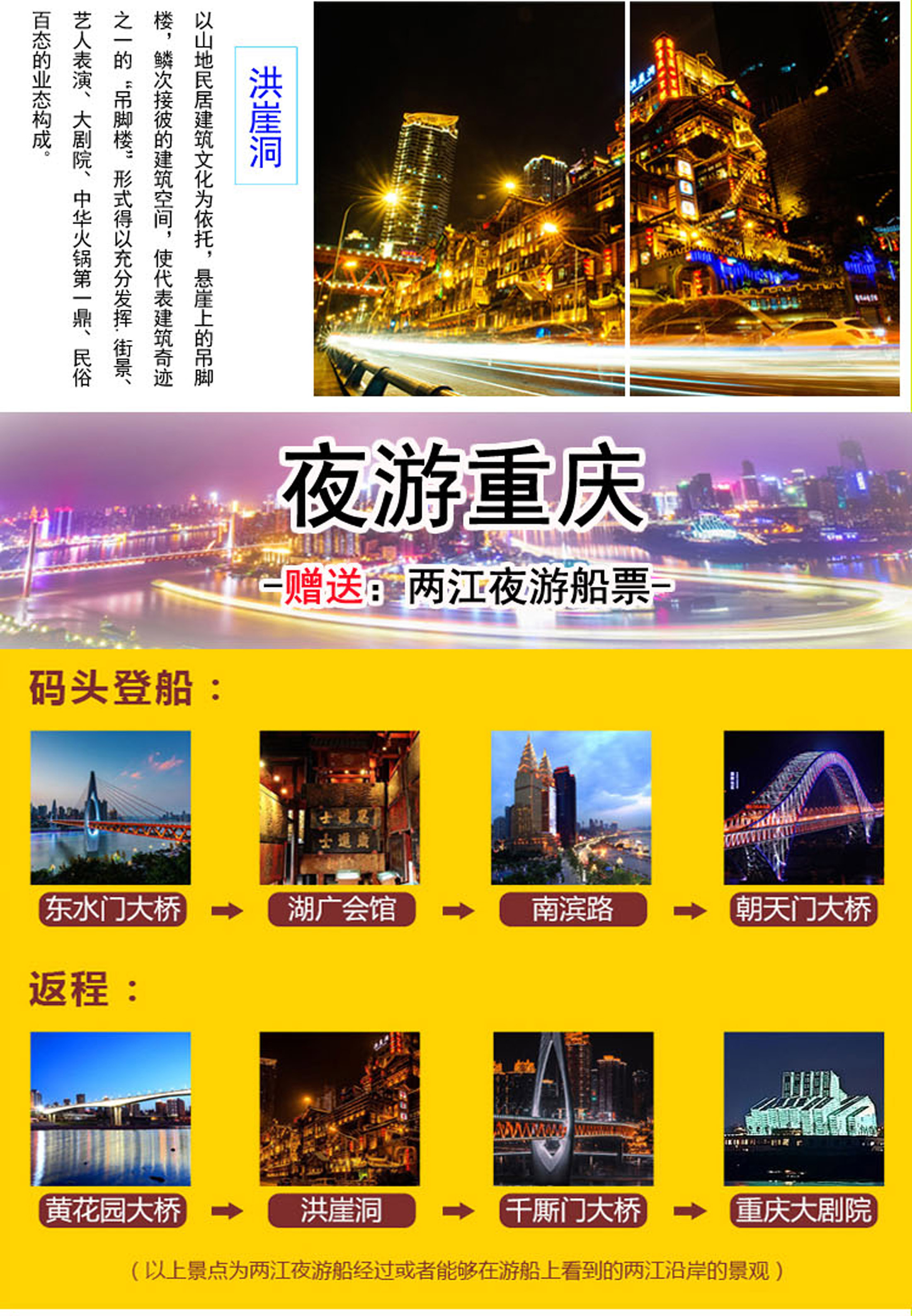 ★景点: 重庆网红景点:万盛奥陶纪、磁器口、李子坝轻轨站、洪崖洞、解放碑。夜游两江、山城步道一网打尽。